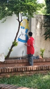 En la propuesta participaron alumnos de Cuarto y Quinto Año, acompañados por las profesoras Nélida Balmaceda y Vanesa Martínez, proyecto que incluyó las actividades de limpieza del sector y restauración de la gruta, embellecimiento con pintura, ornamentación y socialización del proyecto en la institución.